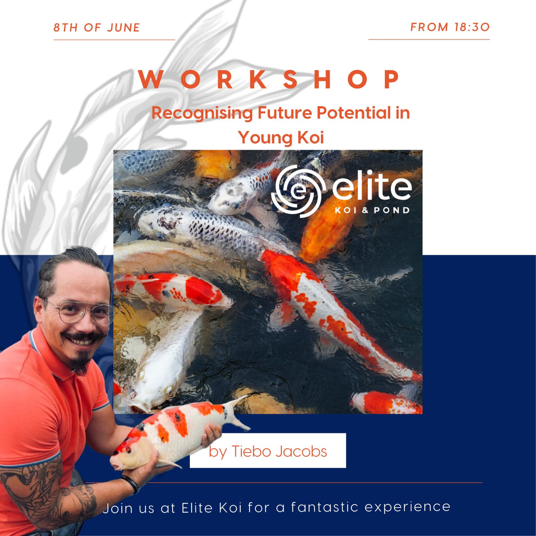 Exciting news! We're thrilled to announce that Tiebo Jacobs will be presenting the Elite Koi Workshop, focusing on recognising potential in young koi. 🙌🏼👀
