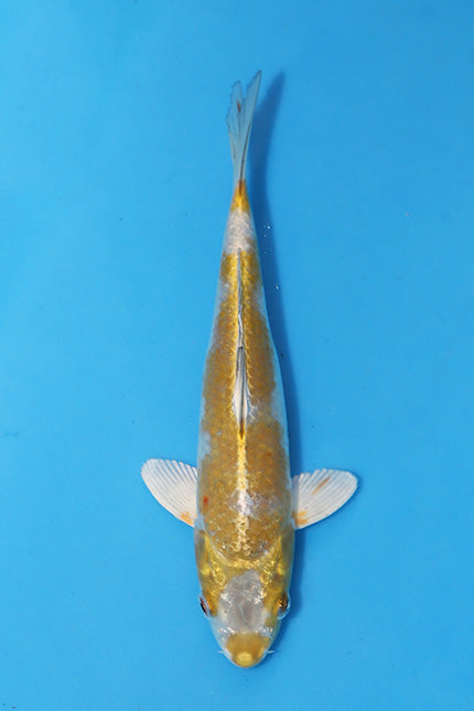 This 24cm Nisai Kogane Ochiba from Maruhiro is a beautifully balanced and elegant koi, combining the calm, natural charm of Ochiba with a subtle metallic golden (Kogane) sheen. It displays soft, flowing Ochiba-style patterning over a warm bronze-gold base, creating the classic “autumn leaves on water” look that makes this variety so appealing.