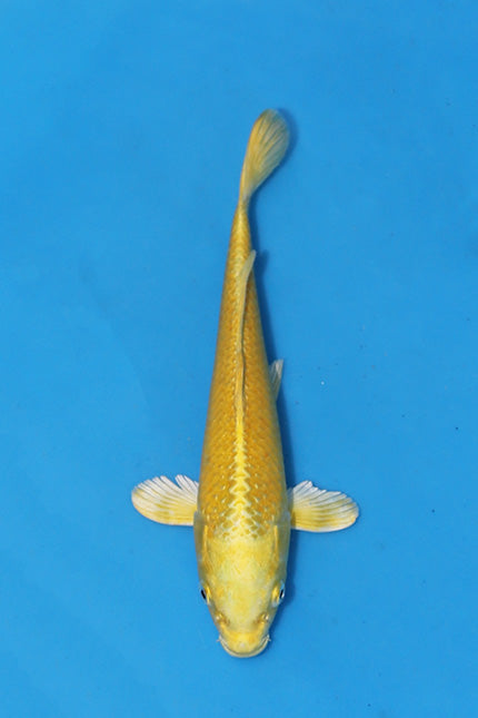 This 27cm Nisai Yamabuki Ogon from NND is a striking metallic koi, prized for its rich, even golden-yellow coloration and clean, reflective skin. The colour is consistent from head to tail, giving this koi a bold, high-visibility presence that stands out beautifully in any pond.